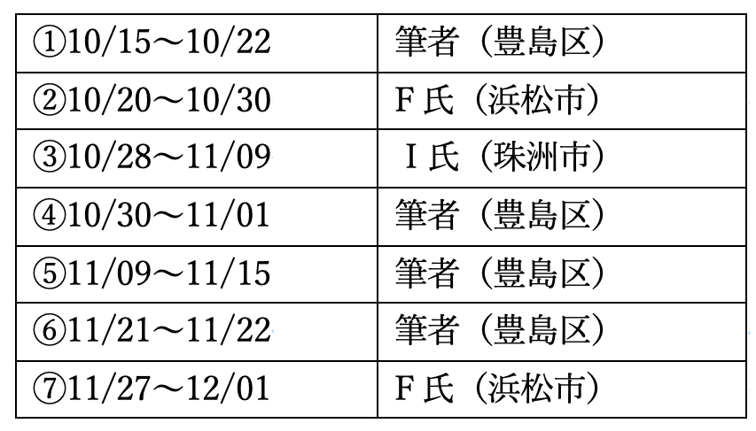 筆者の派遣期間は10/15~10/22という短期であった。だが、八丈町での住家被害認定調査は緒に就いたばかりである。そこで、罹災証明コーディネーターが交代で八丈町に入ることとなり、11月の上旬までは切れ目なく罹災コーディネーターが派遣された。