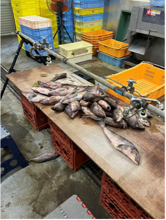 漁業の現場では、朝早くから網漁の見学や加工作業を体験させていただきました。網漁では、漁師の方々が力を合わせて網を引き上げる姿には迫力があり、普段口にしている魚が、人の働きと自然の恵みによって支えられていることを改めて実感しました。さらに水産加工では、魚の内臓処理などの作業を黙々とこなす中で、集中力や忍耐力が求められ、地道な仕事の大切さについて身をもって学ぶことができました。